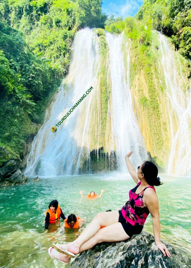 Trong hành trình du ngoạn hồ Na Hang, chắc chắn du khách không ghé tham quan dòng thác Khuổi Nhi hùng vĩ tuôn chảy từ trên cao đổ xuống trắng xóa như một dải lụa mềm mại giữa đại ngàn xanh thẳm, đến với thác Khuổi Nhi, du khách còn được tận hưởng giây phút thư giãn hiếm có đó là được đàn cá đến rỉa chân hay còn gọi là massage chân.